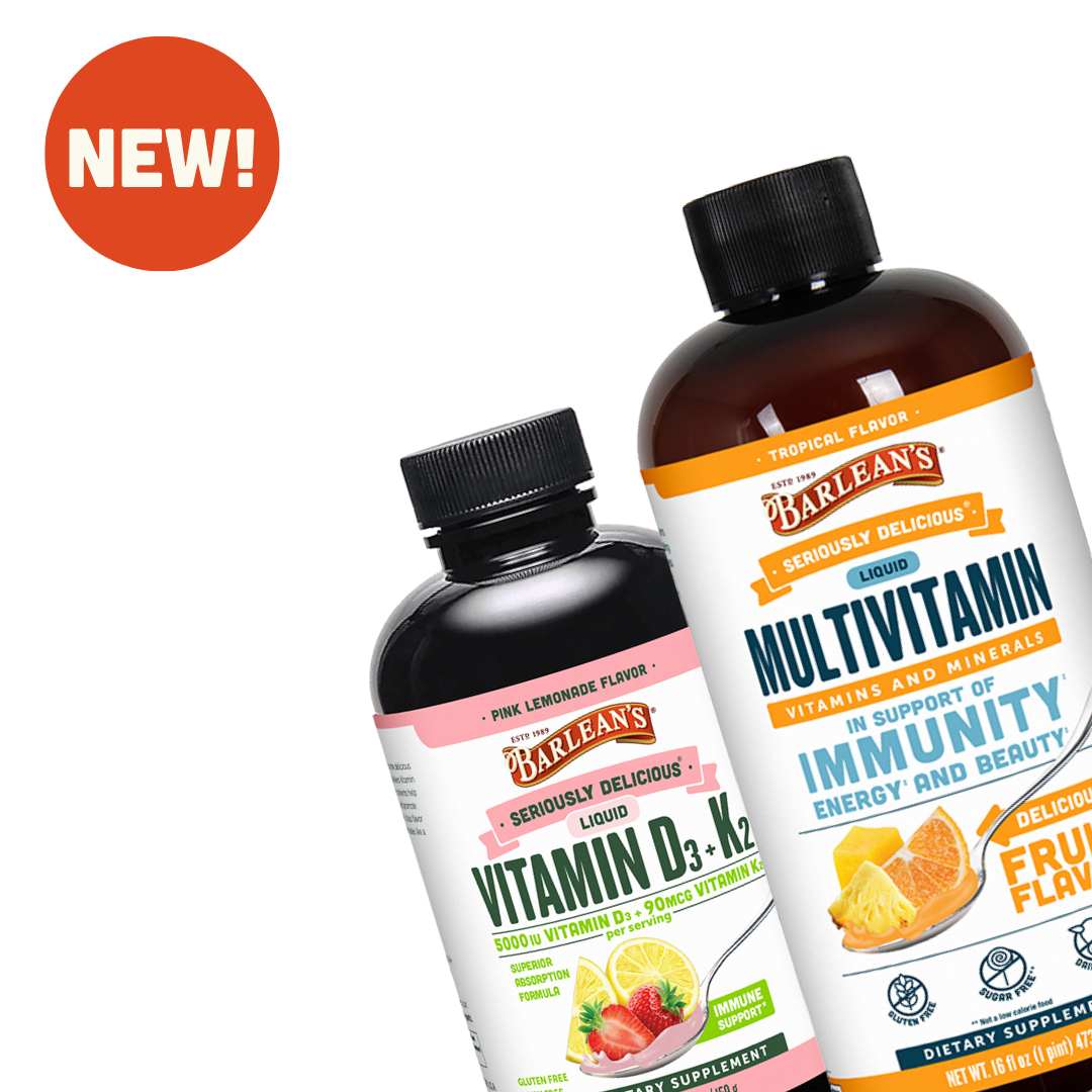 Barlean’s Seriously Delicious® Tropical Liquid Multivitamin delivers 21+ essential nutrients in a creamy, tropical-flavored liquid formula designed for optimal absorption* of fat-soluble vitamins A, D, E, and K. This family-friendly supplement supports energy, immune function, and overall wellness.* No pills required.