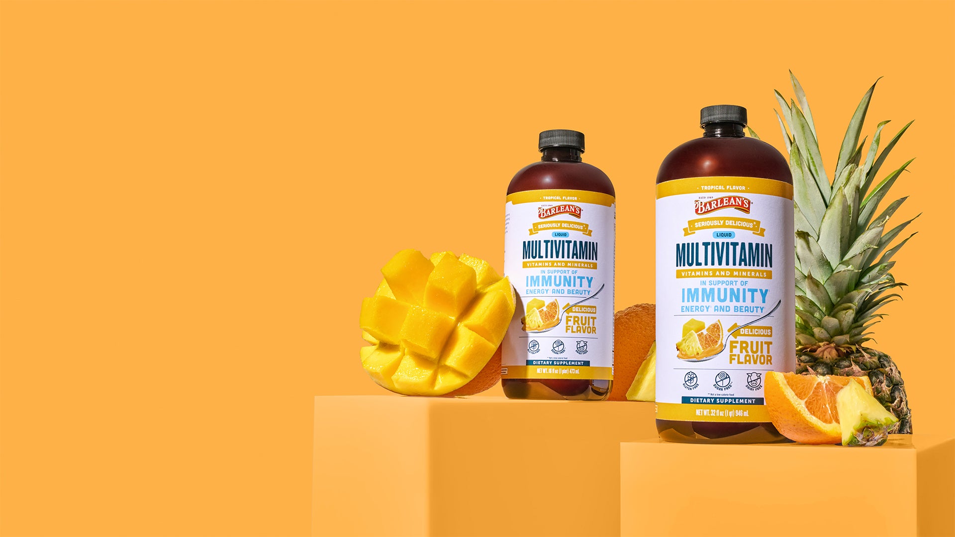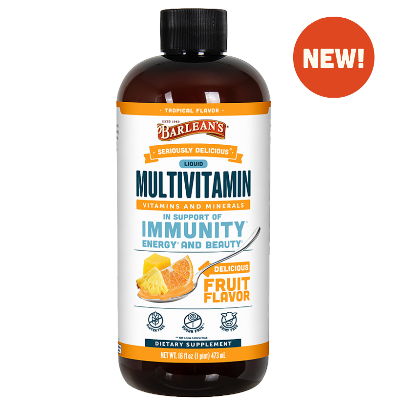 Barlean’s Seriously Delicious® Tropical Liquid Multivitamin delivers 21+ essential nutrients in a creamy, tropical-flavored liquid formula designed for optimal absorption* of fat-soluble vitamins A, D, E, and K. This family-friendly supplement supports energy, immune function, and overall wellness.* No pills required.
